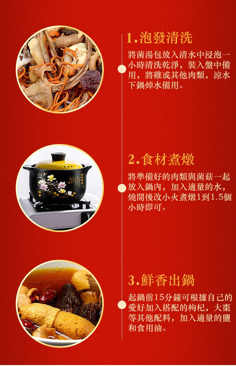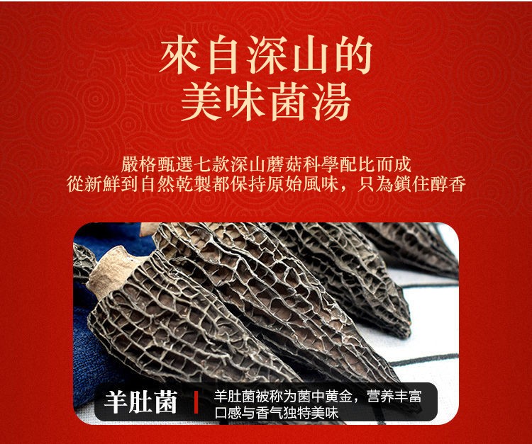 25分鐘前自然無硫熏,無添加食用更安心! [秋冬 季節必備的七彩野生菌湯包x10=NT$1150 ]