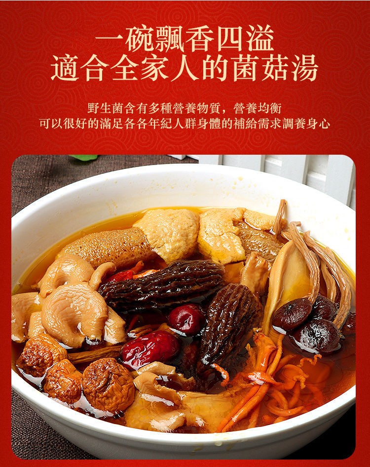 5分鐘前七彩菌湯包,鮮香濃郁,菌體肥嫩,當季乾貨,自然曬乾無硫熏,煲湯首選! - 現貨速發!密封包裝!乾淨衛生! [秋冬 季節必備的七彩野生菌湯包x5=NT$988]