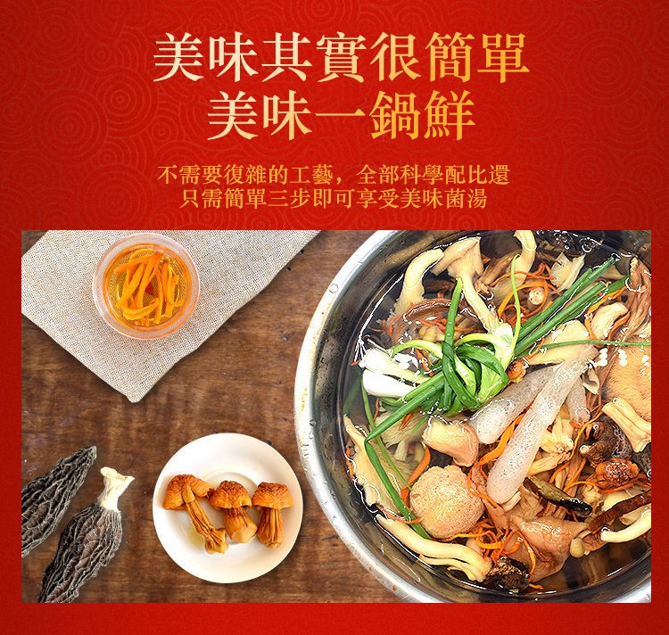 4分鐘前自然無硫熏,無添加食用更安心! [秋冬 季節必備的七彩野生菌湯包x10=NT$1150 ]